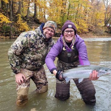 Full day, guided fishing trips start early morning after traveling to one of our favorite Steelhead alley streams best suited for our day with the possibility of travel to another if time allows. Same as a half day trip, your trip out with us will include the use of our rods and reels (spin or fly), all flies, indicators and bait along with a quick lunch or snack. Not included are waders due to cost and sizes.
