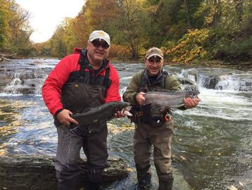 Founded in 2005, Canadaway Creek Outfitters has been providing top-quality guided fishing trips for close to 20 years. Our team, Marty Klemann and Adam Trick are both expert, licensed fishing guides and are passionate about fishing and love sharing their knowledge and skills with our clients, young and old. We are dedicated to providing unforgettable experiences that keep our clients coming back year after year. With our main focus of fishing the famous waterways of the "Steelhead Alley" here in New York and Pennsylvania, both Marty and Adam love to target and release fresh, big lake run Steelhead and Browns as well Salmon and springtime smallmouth Bass. Whether it's fly-fishing trips or float fishing with a steelhead rod, we have you covered!